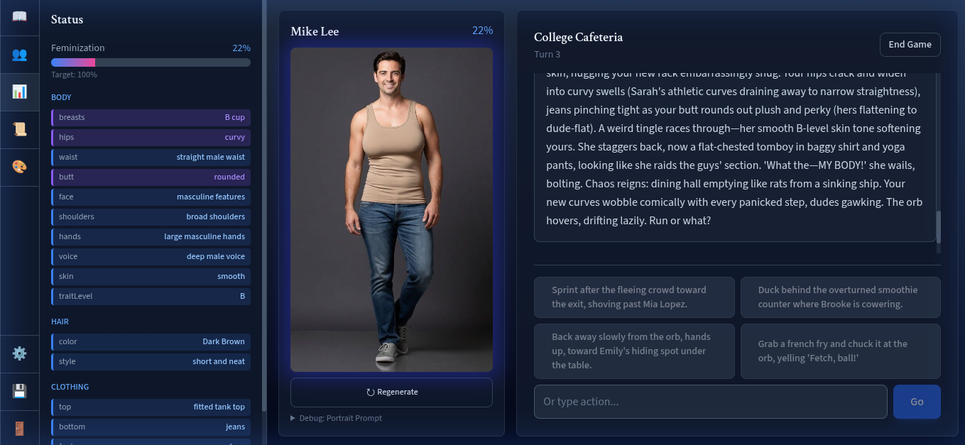 An AI-driven interactive transformation story game.